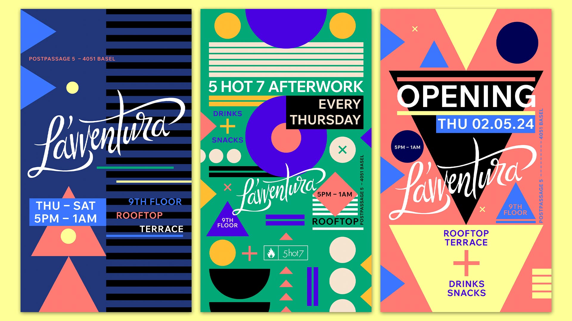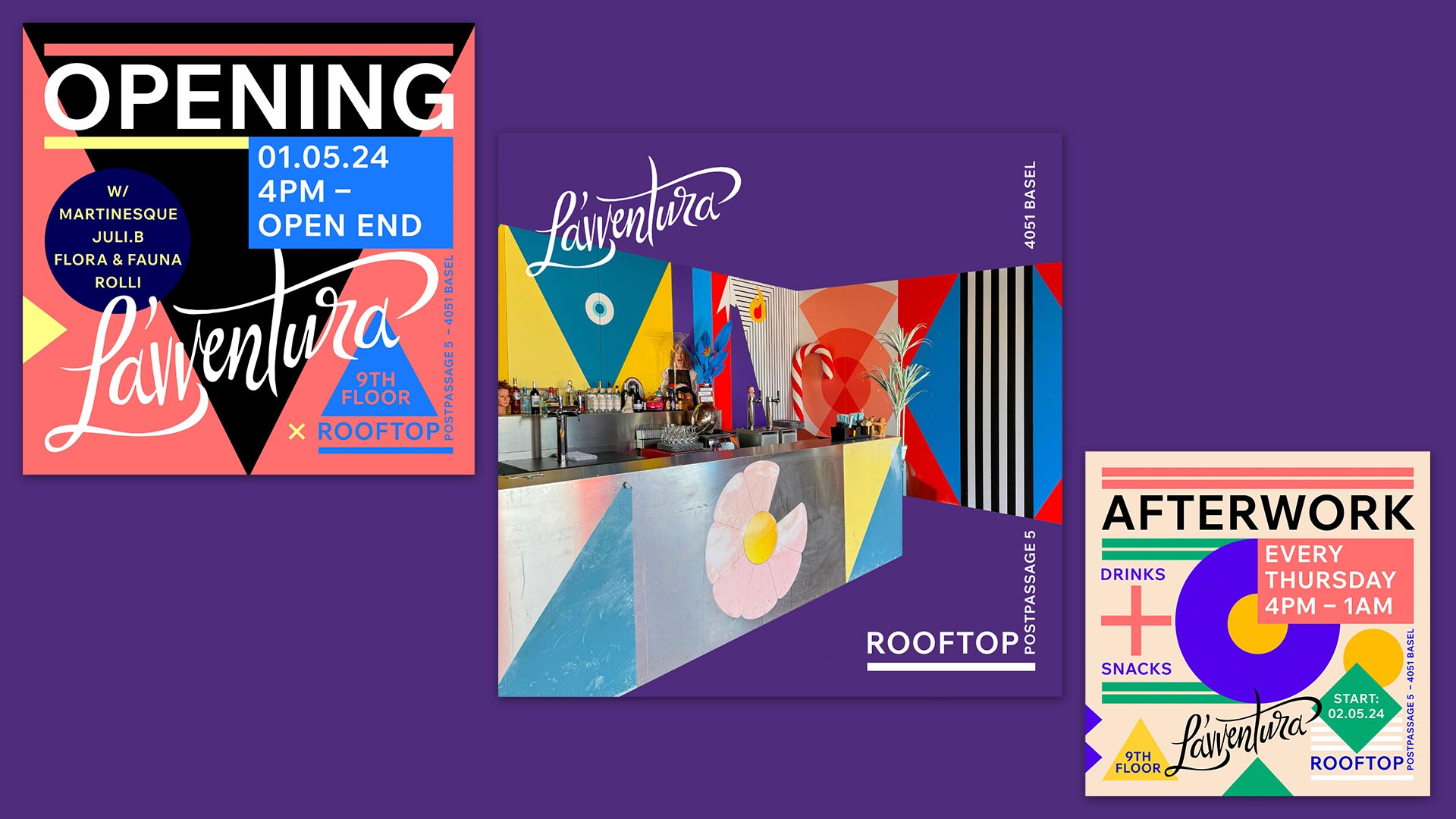 Grafiken für L’Avventura Basel – Plakate, Eventgrafiken für Social Media, Collagen u.v.m.
